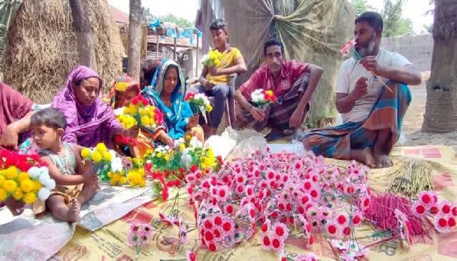 আত্রাইয়ে বৈশাখী সাংস্কৃতিকে ঘিরে কাগজের ফুল তৈরিতে ব্যস্ত কারিগররা