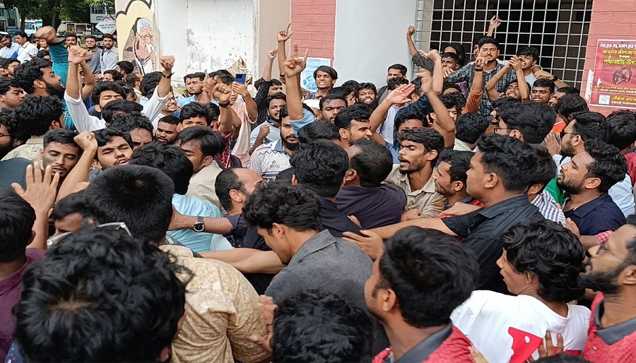 রাজশাহী বিশ্ববিদ্যালয় কেন্দ্রীয় ছাত্র সংসদের (রাকসু) ভোটার তালিকায় প্রথম বর্ষের শিক্ষার্থীদের অন্তর্ভুক্ত করার দাবিতে বিক্ষোভ ও রাকসু নির্বাচন কমিশনার কার্যালয়ে ভাঙচুর করেছে বিশ্ববিদ্যালয় শাখা ছাত্রদলের নেতাকর্মীরা। এসময় রাকসু কার্যালয়ে তালাও মারতে দেখা যায় তাদের।