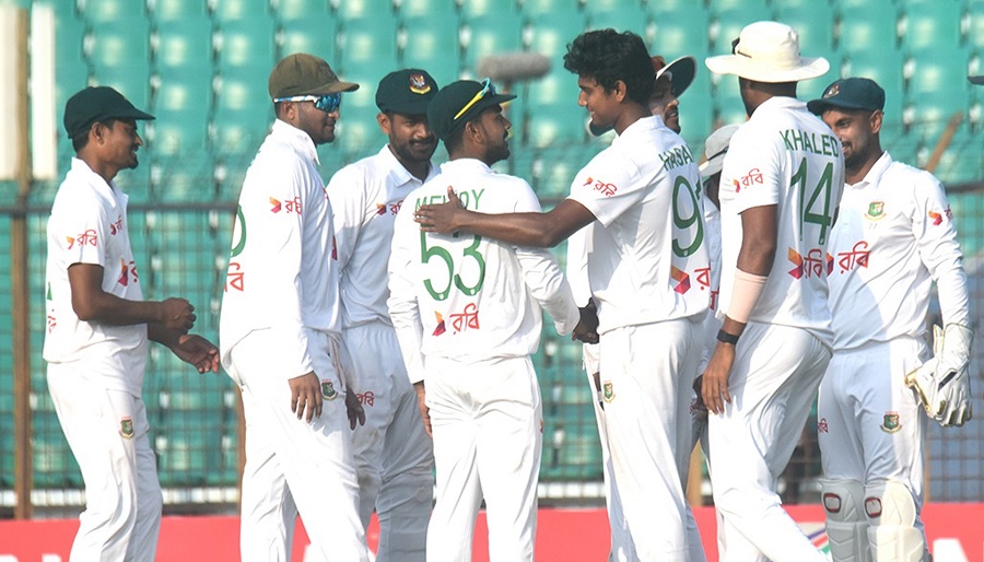 এর আগে দ্বিতীয় দিনের শুরুতে সেঞ্চুরি পূর্ণ করেন আগেরদিন ৯৯ রানে অপরাজিত থাকা মুশফিক। বিশ্বের মাত্র ১১তম ব্যাটার হিসেবে তিনি শততম ম্যাচ সেঞ্চুরিতে রাঙিয়েছেন। ১০৬ রান করে মুশফিক ফেরার পর সেঞ্চুরি করেন লিটন দাসও। তার পঞ্চম টেস্ট সেঞ্চুরি থামে ১২৮ রানে। এ ছাড়া মুমিনুল হক ৬৩ এবং মেহেদী হাসান মিরাজ করেন ৪৭ রান।
