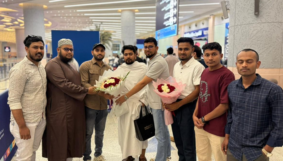 সোমবার সৌদি আরবের জেদ্দায় স্থানীয় সময় সকালে পৌঁছালে প্রবাসীদের সংগঠন এনসিপি ডায়াস্পোরা এলায়েন্সের জেদ্দা শাখার নেতাকর্মীরা নাহিদ ইসলামকে স্বাগত জানান।