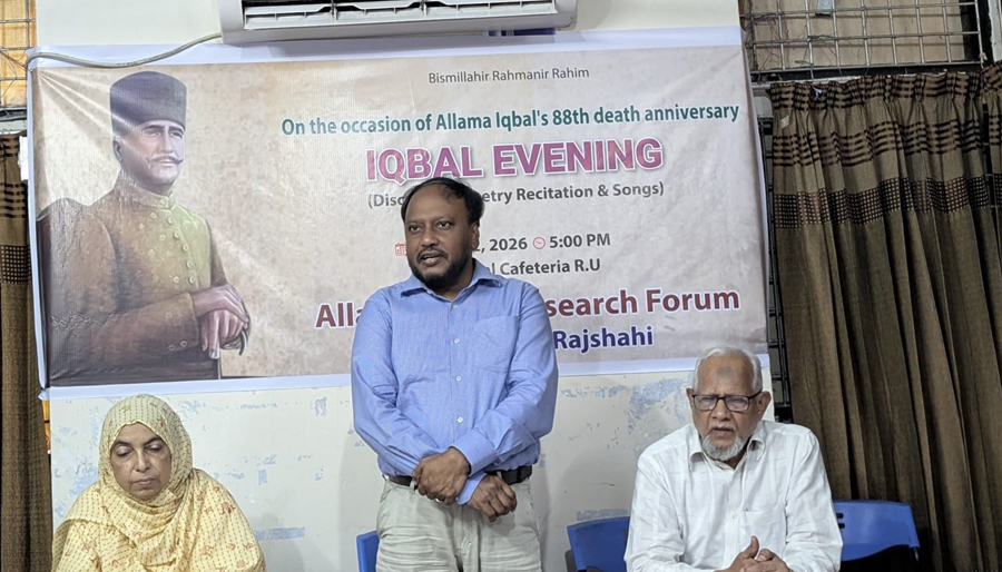 বিশ্বকবি আল্লামা ইকবালের ৮৮তম ইন্তিকাল দিবস উপলক্ষে রাজশাহী বিশ্ববিদ্যালয়ে ‘ইকবাল সন্ধ্যা’ অনুষ্ঠিত হয়েছে। বুধবার (২২ এপ্রিল) বিকেলে ইকবাল রিসার্চ ফোরাম, রাবির উদ্যোগে আয়োজিত এ অনুষ্ঠানে আলোচনার পাশাপাশি ইকবাল রচিত কবিতা ও গানের আয়োজন করা হয়।